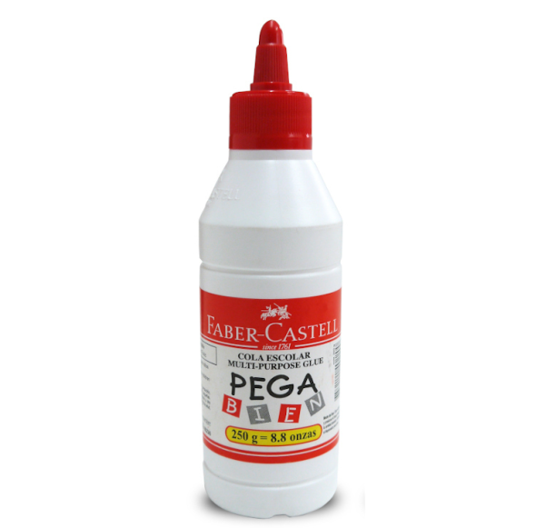 - Pegamento líquido de 250 gr. en envase de plástico.